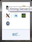 啟動Xming後,可已於系統提示列看Display代號未來連線前請先確定 Xming 已經啟動