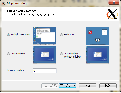 如果要變更 Xming 啟動模式,可以使用 XLaunch